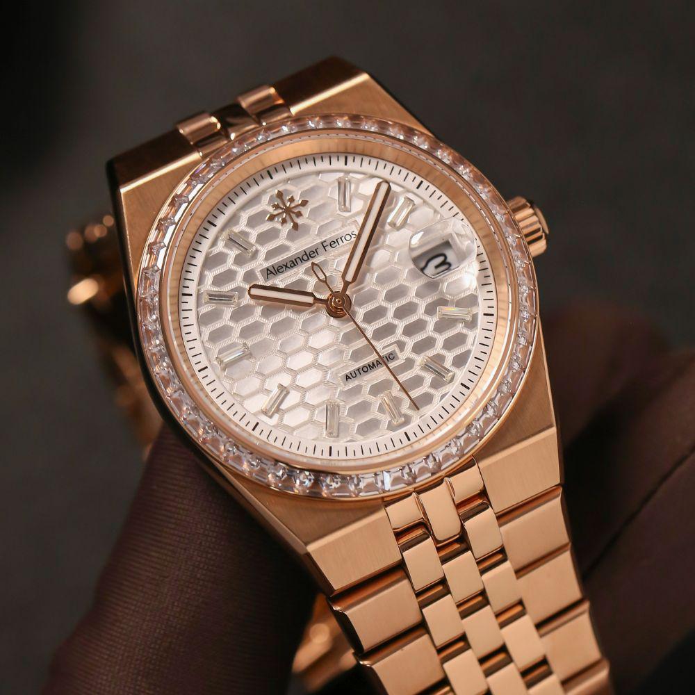 Đồng hồ được tích hợp ô lịch ngày tại vị trí 3 giờ tiện lợi, cùng bộ máy automatic ổn định, không cần dùng pin. Alexander Ferros 3062 là lựa chọn hoàn hảo cho quý ông yêu thích sự kết hợp giữa tính năng và thẩm mỹ trong một thiết kế đẳng cấp.