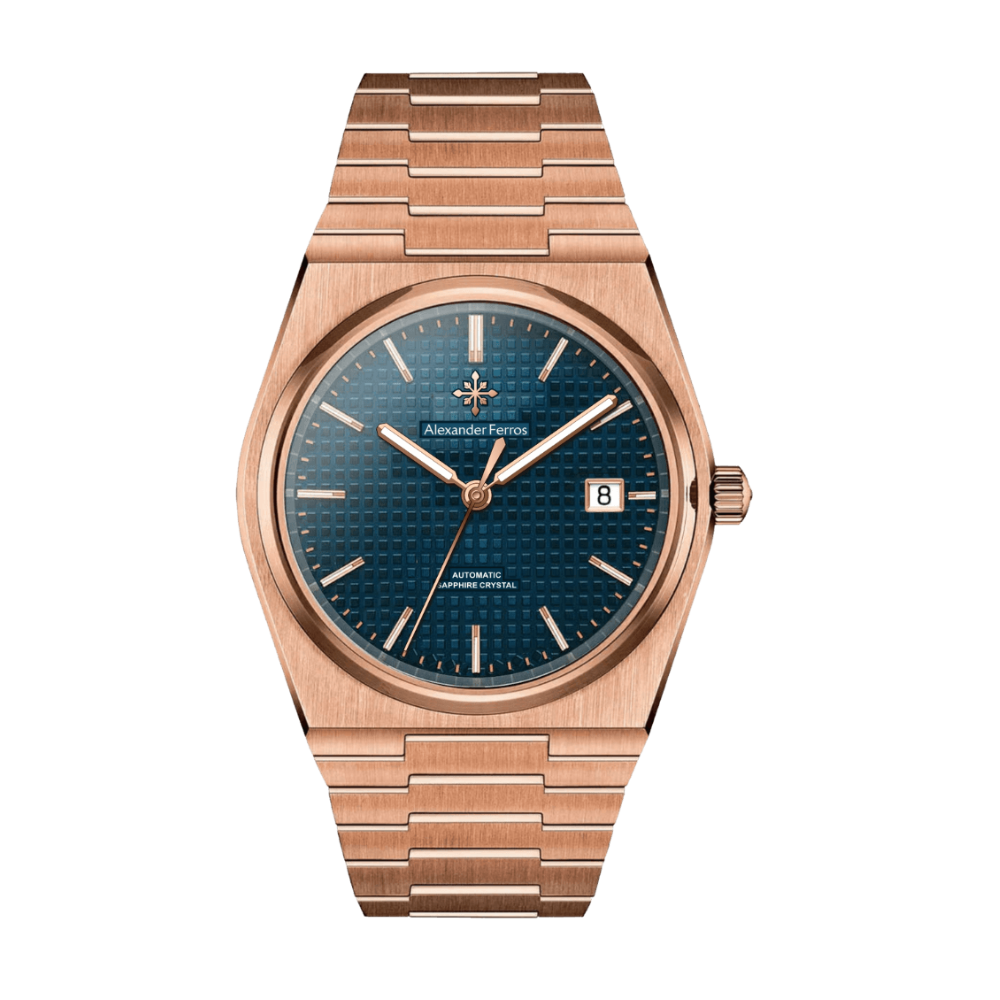 Alexander Ferros 5052 nổi bật với thiết kế tinh xảo, kết hợp giữa phong cách cổ điển và hiện đại. Vỏ đồng hồ được chế tác từ thép không gỉ cao cấp, chống trầy xước, bền bỉ với thời gian. Mặt kính sapphire trong suốt, chống lóa, bảo vệ cơ chế bên trong.