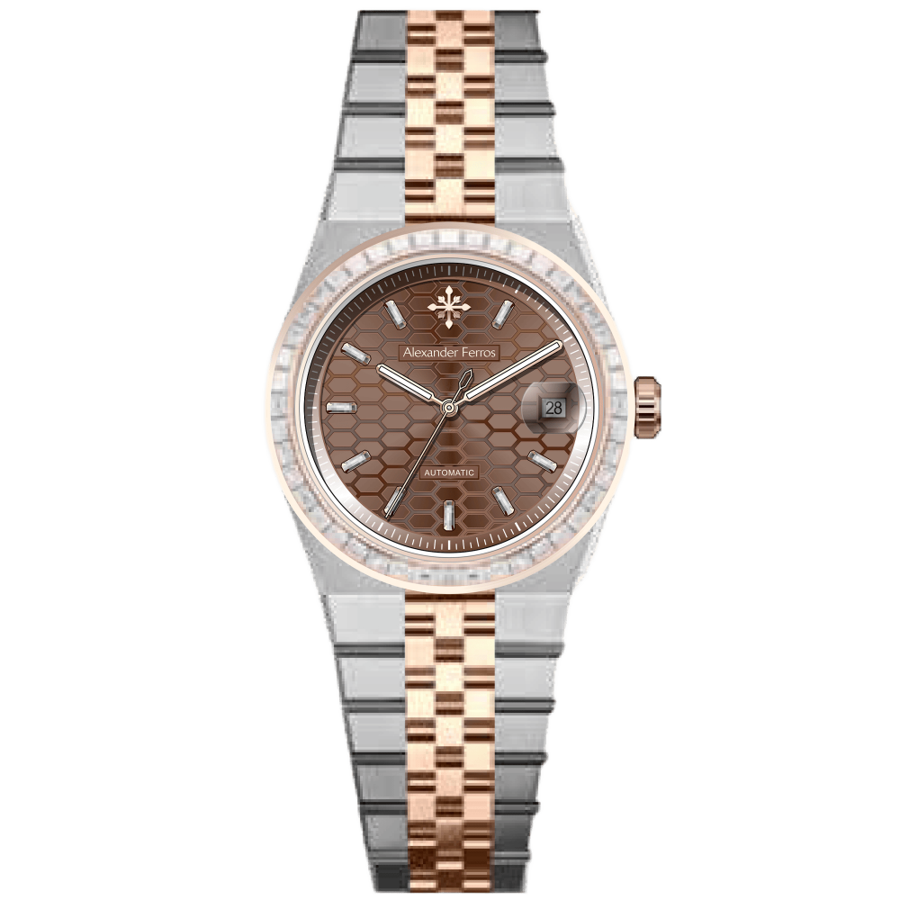 Alexander Ferros 8181R là dòng đồng hồ cao cấp nổi bật với thiết kế demi sang trọng và viền đá đính tinh xảo. Bộ máy Nhật Bản bền bỉ cùng kính sapphire chống trầy giúp sản phẩm vừa thời trang vừa chất lượng, lý tưởng cho những ai yêu sự đẳng cấp và tinh tế.